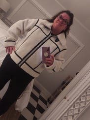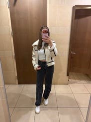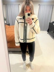 I loved how cozy it was! I also loved the leather detail which made it different to other jackets I’ve worn! Great fit too.