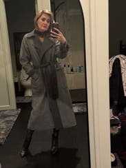 Wouldn’t recommend. Looks bathrobe-y or oddly military-esque. Don’t love the non-tailored coats, I think. I think this only looks good very dressed up with pointed toe shoes. Otherwise, it makes me look messy. Prob should’ve sized down.