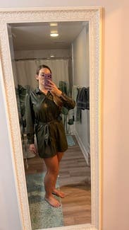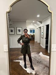 This dress is so cute and flattering on! It fits perfectly. The dark green color is different and perfect for fall. Received a lot of compliments!