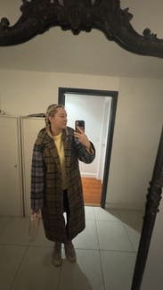 This coat is everything. So many compliments, someone actually stopped me on the street! It is the perfect mixed plaid with an unexpected pop of color, oversized in the best way, cozy like a blanket, a great weight for cold but not too cold. I rented the large first which was a little too big (but I made it work), then swapped for a medium which is perfect and still oversized.