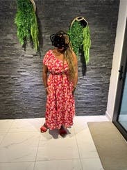 This dress was great! I was able to wear a strapless bra, which was really helpful. The skirt is lose and flowy and the color pops. It has a good stretch and I didn’t feel constricted at all. I probably could have done a better job posing this dress because I don’t think I’m doing it the best justice here.