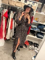 Wore this to a baby shower. It was a little big and I def could have went down a size but wore it anyway! Would rent again
