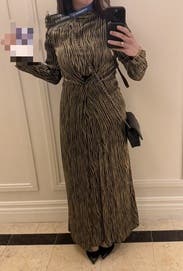 I wore this for Thanksgiving day brunch. Just a classy dress all the way around. Need to add a belt to add definition to waist. Received several compliments from people in the restaurant. Not a great pic but was the best I could do.