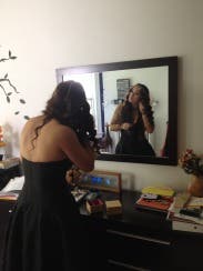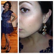 Sorry about the weirdo photo- my friend asked to see how I did my makeup! I absolutely loved these earrings. They were the perfect complement to my glitzy Badgley Mischka dress. The one thing I will note, however, is that for those of you who have reactions to nickel, I would suggest putting a little bit of triple antibiotic cream on the stud before wearing these earrings. My earlobes were slightly irritated, but it was definitely worth it!