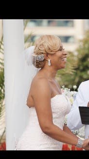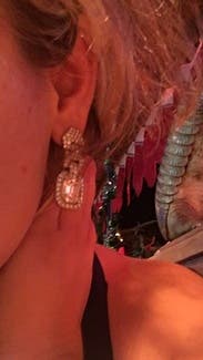 These earrings are a real fashion statement. Coordinated beautifully with the Badgley Mischka gown I rented.