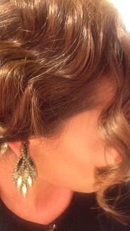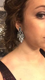 The earrings felt very glamorous and we're great for a black tie wedding. They were also the perfect size. I wore these with a v-neck black dress, no necklace, and a large bracelet. The only con is they felt heavy after wearing them for a few hours.
