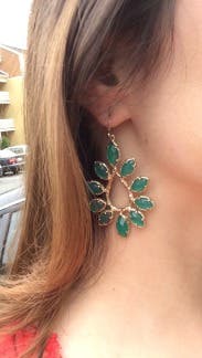 These earrings worked so, so well with my emerald bridesmaid dress. They were the perfect pop of color against my skin and hair. Moreover, the earrings looked as stunning with my hair down as with my hair up. They weren't too big as to be heavy or overpowering to my overall look, but they were big enough to be noticed and provide some style to my dress. I wore the earrings without a necklace since I had a one-shoulder neckline, and as such, they offered just enough boldness to counteract not having on a necklace. I loved these earrings and I think the green would work well with yellows, oranges, pinks, and purples.