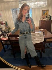 Loved this take on double denim and fit perfectly TTS! Fun to wear with sneakers to bop around a bar or dress up with heels for an elevated girls night. Big fan and will rent again