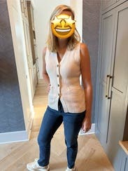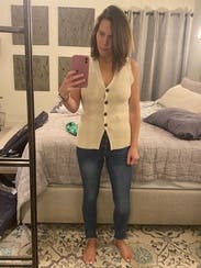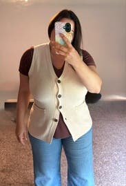 I don’t have a great photo, but this is a great easy vest to throw on with jeans or a skirt. Very on trend.