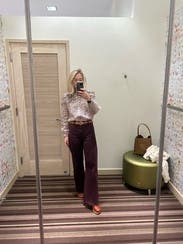 I’m a big fan of Pistola and these pants did not disappoint. They are the perfect color for fall: a brown/plum shade that I could wear with almost anything. I love the wide leg and the length was great for me (5”9). I rented my usual Pistola jeans size and found these to run slightly large, and they stretched out after wearing. I would size down if I rented again.