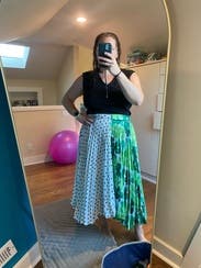 Love how this skirt moved when I walked! Great pleats, silky fabric, fun pattern and would rent again!