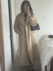 Soft material and a timeless style, but there’s a lot of fabric in this trench. I’d recommend sizing down for a cleaner fit. Just felt a little too oversized on me.