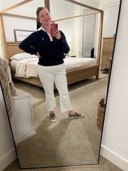 Really great sweater to participate in the preppy trend in a more updated way. Love it.