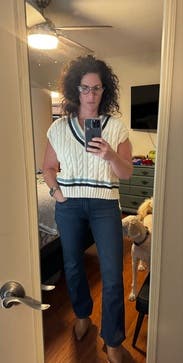 I wanted so badly to like this polo vest but I just couldn’t figure out how to style it. I don’t love with these light wash jeans, but also didn’t like dark wash. Tried to go with a pencil skirt, still didn’t look right. Best of luck to you on your styling efforts!
