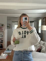 Giving all the right casual preppy vibes!!! I wore the heck out of this sweatshirt - it’s the perfect length and fit. Only complaint is that the neck is a little tight!
