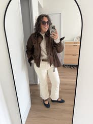 Loved this jacket and bought it immediately! The brown is perfect for fall and the crop makes it really versatile.
