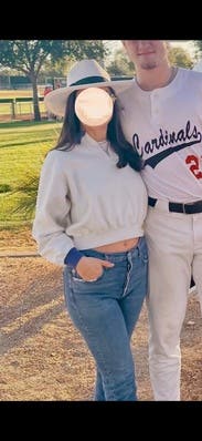 This was a cute sweatshirt and shows a little bit of belly. I wore this to a daytime spring training game and felt comfortable.