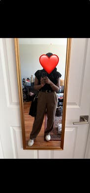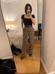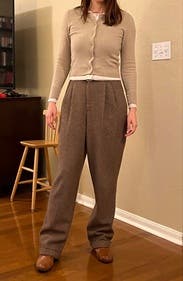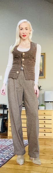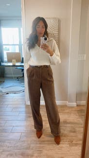 I love the vibe of these pants. They feel very wintery though, a bit scratchy and thick. Also they were definitely oversized, I needed to belt tightly high on the waist in order for it to look presentable.