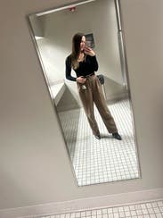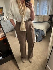 I didn’t think I would like these, but they fit great and looked expensive. They were tall enough for my 5’11 body but the waist was a bit big and I could have sized down. The fabric is definitely a winter weight.