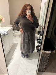 This turtleneck was by far one of my favorite tops ever! It is the perfect chocolate brown, the sleeves are wide at the ends which gives it an elevated look, the neck is dramatic and thick but loose and comfortable to wear any time, the fabric is not at all itchy, overall every detail was perfect in my opinion. Loved this!