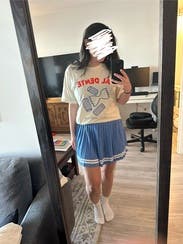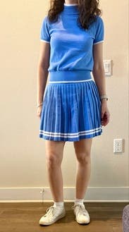 Wore for a pickleball tournament costume party and it was very cute but also comfy and functional because there are spandex shorts under the skirt that have pockets. I’m usually a small or medium and the small fit just right