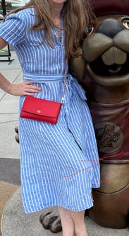Cute for 4th of July week, paired with red. Lightweight and comfy, did wrinkle easy I had to iron it out of the bag. Fun for a rental.