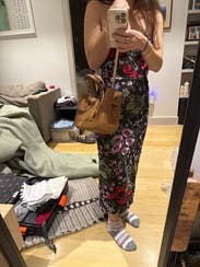 A beauty inside and out. Perfect size for a day of museums and frizzy hair. Loved this bag so much, but what put it over the top for me was the luxe, soft interior. Each reach for lipgloss was a mini treat for my hand. Note - there’s no real closure at the top, just a heavy gold piece that folds over the top. Would not recommend for airplane - or any situation where your bag will topple over. Contents would roll right off that smooth leather and into the floor.