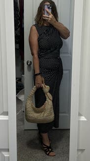 Loved this bag. It worked for day and night, and I used constantly on a trip to Italy. It somehow stretched to accommodate a lot while also being slender and compact. Perfect for summer.