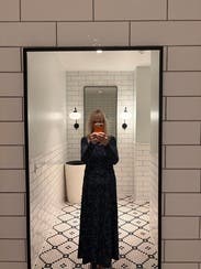 This was SO elegant and chic and contemporary all at the same time - it flowed over any lumps or bumps and I felt like a princess who had very modern style. I sized up to an XL and was glad I did - it fit snugly but smoothly over my bust and was slightly loose (but in a flowing, looked purposeful way) everywhere else.