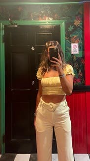 These were a little hard to dress but super fun once I found the right top. Loved the material and the shape but these were a little too big and I wish I had gotten a size down. Ended up pinning it to hug the waist better