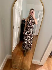 Love this standing dress in muted purples. Would put on before hair and makeup - the head hole is small!