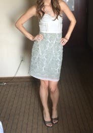 I rented a size 6 and 8 Nicole Miller however the 6 was abruptly discontinued. RTR substituted this dress which really is beautiful. However the top didn't fit as I am a DD (of course whomever chose the dress for me wouldn't know this!) I was surprised that RTR even substituted the dress (for no charge, despite the fact that this rental was most costly than my original) and I'm grateful that they did - what a company! Their customer service is absolutely unbeatable and I will continue to use and recommend this amazing service! PS - the recommended bust size for this dress is A-C - and they mean that! If you fall within this range however DO NOT miss out on this dress