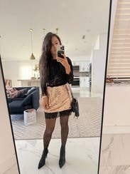 Rented the set and loved it! Skirt ran a bit big but loved these two together. A little itchy so maybe undergarments if you’re sensitive. So chic!