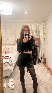 This top is amazing! The full set is 🔥 It really holds your chest in place since you can wear a bra with the sheer back. One note: RTR has the incorrect size conversion for French sizing (at least for this set). It lists the 38 as a 6 but if you go to any other product listing for these, a 38 is a 6. That’s why it runs large. I would take your normal size, if you account for the RTR error. The “4” that is really a 6 was a bit too large for me but I’m a 34D so I could make it work. The skirt was loose but you couldn’t really tell.
