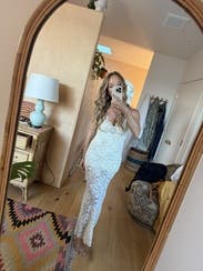 This dress fit perfectly! I have an hourglass shape, and it hugged my curves in all the right places—sexy but still dainty. I wore it during my wedding weekend for casual drinks with friends, and it felt effortlessly bridal without being over the top. Total confidence booster!