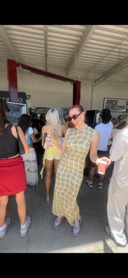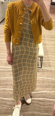 Dress of the summer. Super breathable, lightweight, and flattering. Definitely shows any bumps from undergarments so wear something smooth. Just a feel good dress.