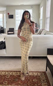 I didn’t end up wearing this, but it is stunning. I was surprised at how much I liked the curve hugging fit! The material is really light and thin- gonna try to snag this again in a few months for a summer trip.
