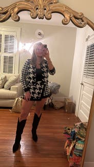Super cute. Repeat outfit — once with the skirt for work and another with jeans for shopping. Loved it!
