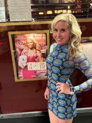 Absolutely perfect outfit to go see the brand new Broadway, musical Queen of Versailles with the title song, champagne wishes, and caviar dreams. There are little tins of caviar all over the dress. Is my second time to rent this outfit it’s a stretch netting material with a good solid liner under the main torso. It’s very comfortable And an adorable little fun statement dress.