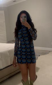 This dress fit like a glove — super flattering, sexy, and definitely a head-turner. It is short, but that’s part of the vibe. I paired it with tights, knee-high boots, and a leather jacket since it was cold out, and the whole look came together perfectly. I got so many compliments throughout the night. If you want something comfortable, form-fitting, and guaranteed to get attention, this is the one. Period.