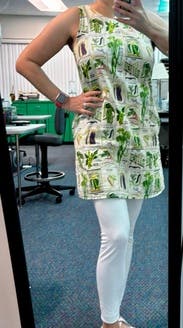 Loved how comfortable it was. It was a bit short, and I’m only 5’1”, so I wore it with leggings for work. Fun print.