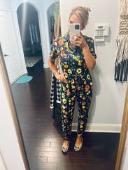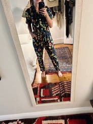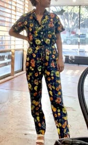 Getting on the fruit and veggie print trend. This jumpsuit is adorable. Material is thin and breathable and o love the drawstring waist.