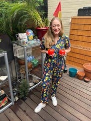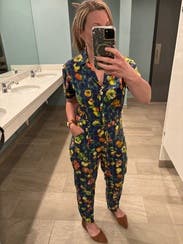 This was a great jumpsuit for a girls weekend away. The pattern was kind of subtle but once you recognized the tomatoes, it was a hit. Soft, lightweight material. I actually traveled on a plane with it and it was great.