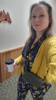 Was surprised how thin the fabric was, made the garment feel cheaper but still cute and complimented but was hard to tell if the compliments were bc it was actually really cute or the pattern was just so loud it would be weird to not make a comment if that makes sense. Easy enough to get in and out of and appreciated all the pockets. Traveled with this and was able to get the wrinkles out pretty easily with wrinkle spray.
