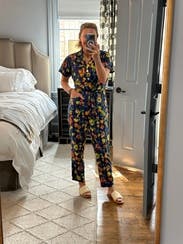 I wore this to a food and wine festival and I’m pretty sure I’ve never received so many compliments on an outfit in my life (a close runner up was the last time I wore another Rachel Antonoff jumpsuit). I only wore it to the festival but I think this would be such a cute summer weekend outfit, especially when heading to the farmers market. My one complaint is that the sizing is a little off. Last summer I ordered the same jumpsuit in a different pattern, in a size large, and it fit perfectly. I initially ordered this jumpsuit in a large, and while it technically fit, it was frumpy and not very flattering. The waist drawstring helped, but it still wasn’t ideal. Really wanting to wear this to the festival, I swapped the large for a medium and it was much better, but a little short in the torso. I had to heavily steam it to get the fabric to loosen up a little to fit better, but I was still slightly restricted with my movements. The medium fit, and was more flattering, but long torsos beware.