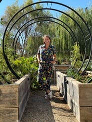 It is a sweet jumpsuit that got so many compliments at a festival in our local community garden. People asked me for the label and where they can buy it, etc. but I do want to be honest: it’s a LOT of tomatoes! The fabric is very basic cotton fabric and it does seem to run a bit short in the crotch. Still, I enjoyed wearing it! It was perfect for the event and I love these type of pieces that become a conversation starter!