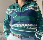 I loved this cute dog sweater, it fits oversized but slightly cropped. Feels very wintery.