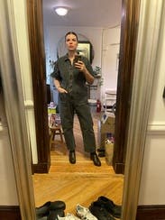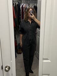 Wore this jumpsuit basically every other day, love that there is room for a sweater if need be, the material feels nice and heavy. Will probably get it again in a smaller size.
