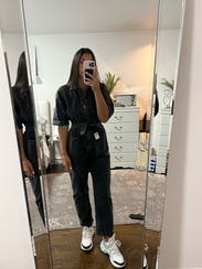 I have received numerous amounts of compliments on this jumpsuit. I love it, incredibly easy to style with a sneaker or dress up with a heel.