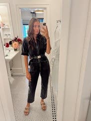 I cuffed the jeans up at the bottom. The jumpsuit didn’t come with the belt but it doesn’t really need it. Comfy and casual!